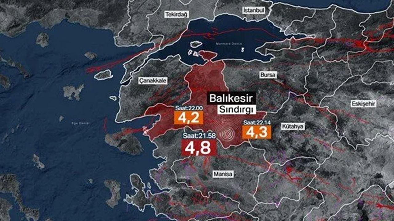 Dün akşam saatlerinde Balıkesir Sındırgı merkezli meydana gelen deprem, İzmir, Bursa, İstanbul, Tekirdağ, Kocaeli ve Sakarya olmak üzere Marmara ve Ege bölgelerindeki birçok ilde hissedildi. İçişleri Bakanlığı tarafından yapılan açıklamada, Balıkesir'de 6,1 büyüklüğünde meydana gelen depremde 4 binanın yıkıldığı ve 26 vatandaşın hafif yaralandığı ifade edildi.