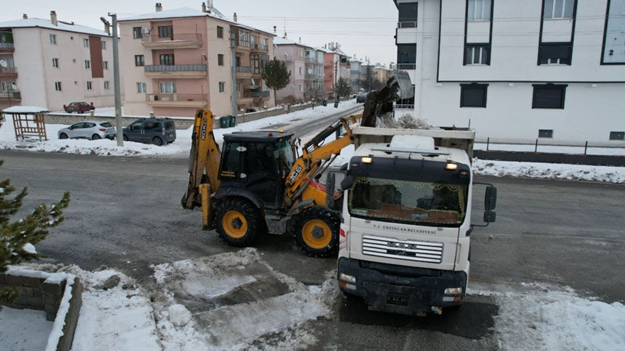 Vatandaşların güvenliğini ve ulaşımda aksama yaşanmamasını sağlamak amacıyla Erzincan Belediyesi ekipleri tarafından sokaklarda biriken karlar temizleniyor.