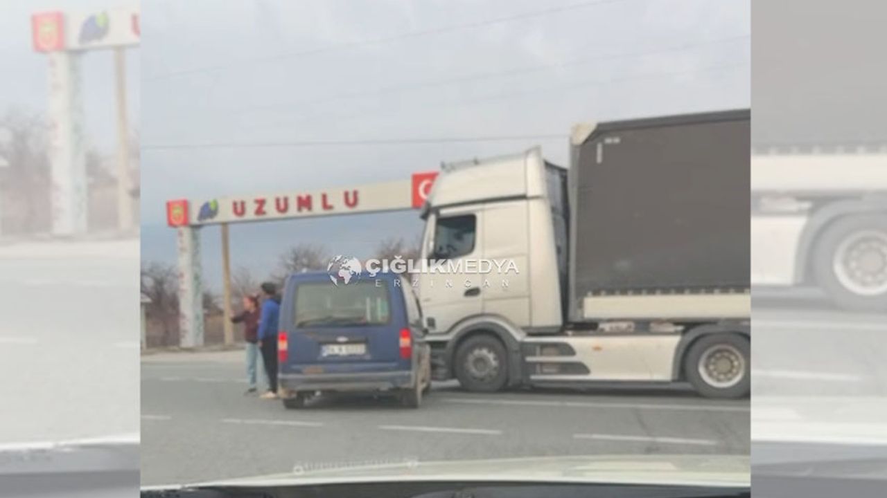 Çığlık Medya ihbar hattına gelen bilgilere göre, Erzincan–Erzurum karayolu üzerinde, Üzümlü ilçe girişi önünde ilçe yönüne doğru seyir halinde olan ticari araca, ana yol üzerinde ilerleyen bir TIR çarptı. Kazada can kaybı ya da yaralanma yaşanmazken, araçlarda maddi hasar meydana geldi.