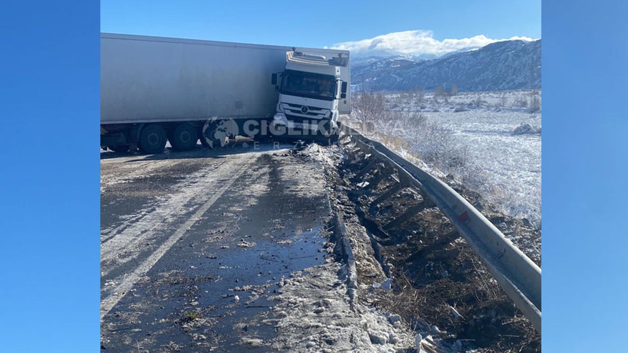 Çığlık Medya ihbar hattına gelen görüntü ve bilgilere göre, TIR’ın sollama yaptığı sırada sürücüsünün direksiyon hâkimiyetini kaybetmesi sonucu araç bariyerlere çarptı. Çarpmanın etkisiyle TIR ters dönerken, dorsesinin yolu tamamen kapatması nedeniyle trafik akışı durdu.