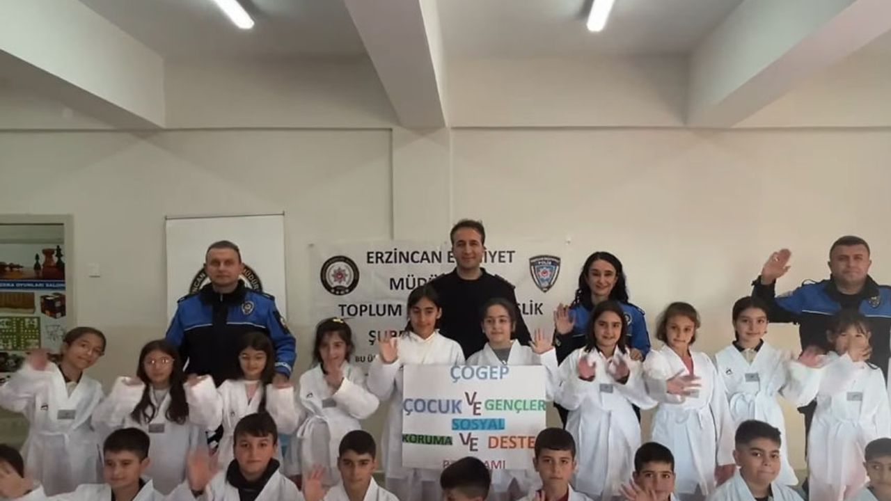 Erzincan İl Emniyet Müdürlüğü Asayiş Daire Başkanlığı koordinesinde yürütülen “ÇOGEP – Hep Birlikte Aileyiz” projesi kapsamında, Toplum Destekli Polislik Şube Müdürlüğü ekipleri tarafından Göktürk İlkokulu’nda öğrenim gören 20 öğrenciye tekvando kıyafeti hediye edildi.