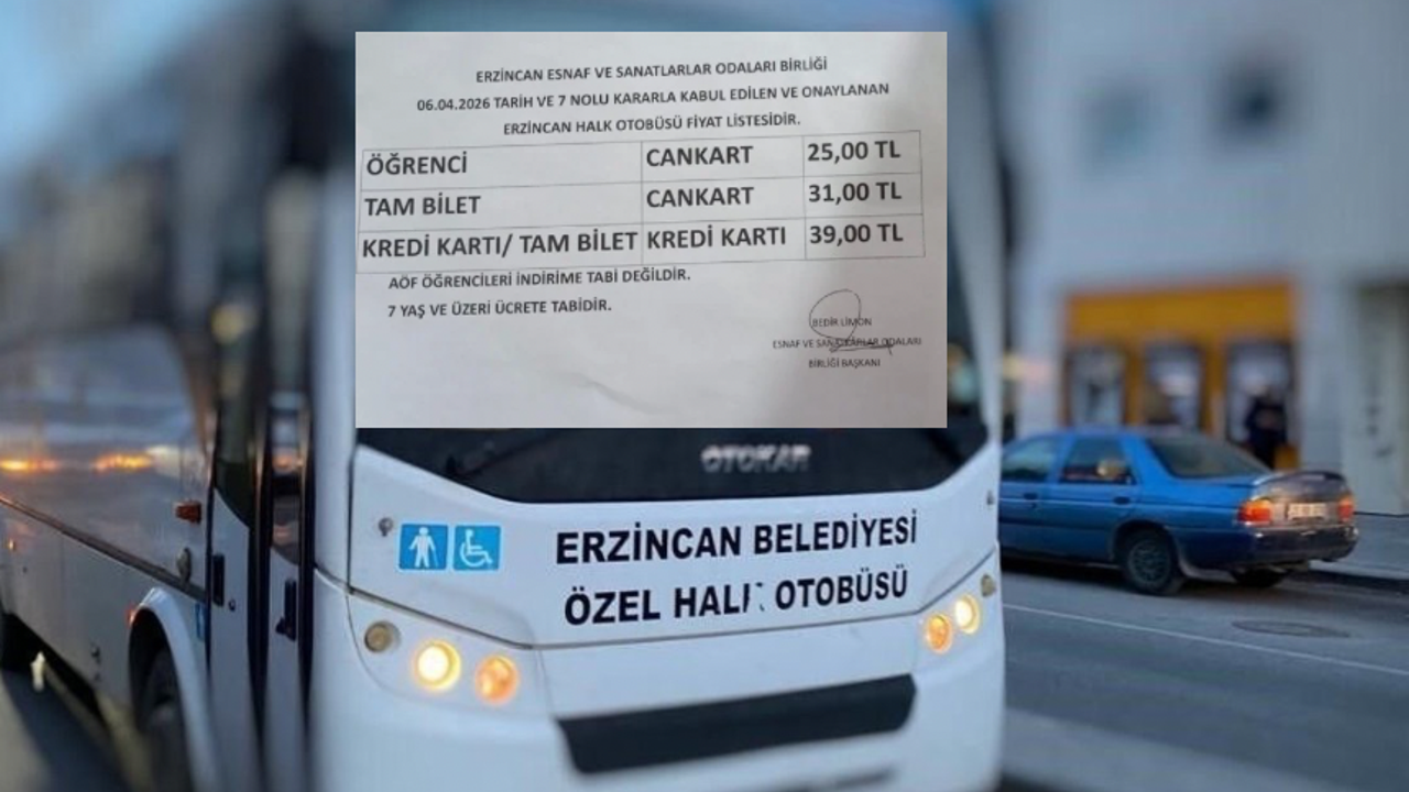 Erzincan’da şehir içi toplu taşıma ücretlerine zam yapıldı. Artan akaryakıt ve işletme maliyetlerini gerekçe gösteren Erzincan Esnaf ve Sanatkârlar Odaları Birliği, 06 Nisan 2026 tarihli ve 7 sayılı kararla yeni tarifeyi yürürlüğe aldı.