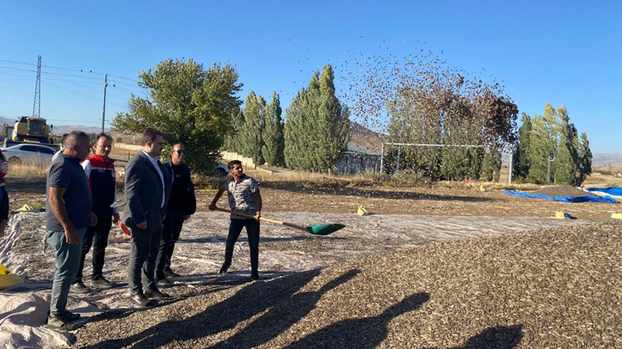 Bu yıl 18 bin dekar alanda üretimi yapılan çerezlik ayçiçeğinden yaklaşık 6 bin ton rekolte bekleniyor. Hasat törenine İlçe Tarım ve Orman Müdürlüğü ekipleri de katıldı.