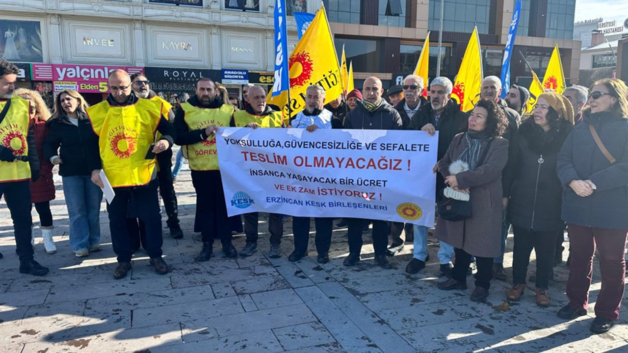 Erzincan’da eylem kapsamında Dörtyol Cumhuriyet Meydanı’nda bir araya gelen KESK Erzincan Şubesi üyeleri, basın açıklaması gerçekleştirdi. Açıklamada, kamu emekçilerinin her geçen gün daha fazla yoksullaştığı vurgulanarak, insanca yaşam koşullarının sağlanması için üretimden gelen gücün kullanıldığı ifade edildi.