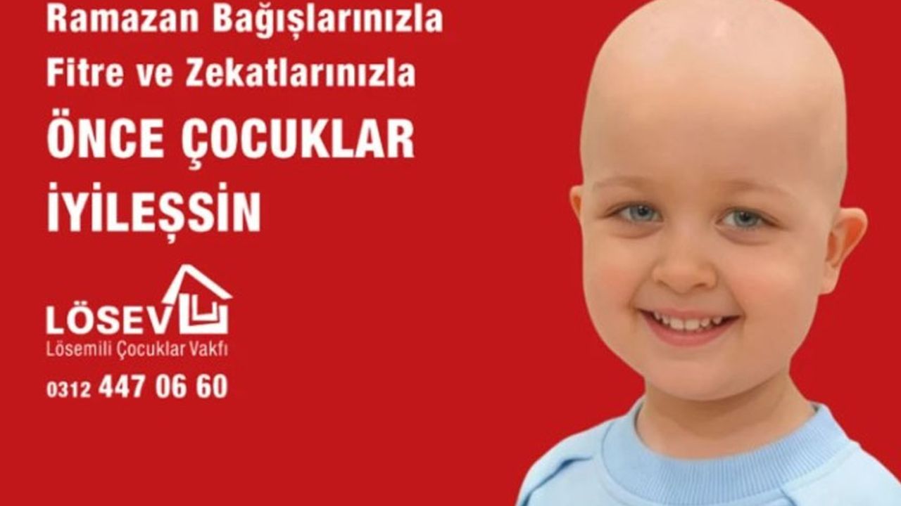 Lösemili Çocuklar Vakfı (LÖSEV), Ramazan ayı boyunca lösemi ve kanser tedavisi gören çocuklar ile ailelerine destek olmak amacıyla bağış kampanyası başlattı. “Önce Çocuklar İyileşsin” sloganıyla yürütülen kampanya kapsamında, fitre ve zekât bağışları ihtiyaç sahibi ailelere ulaştırılacak.